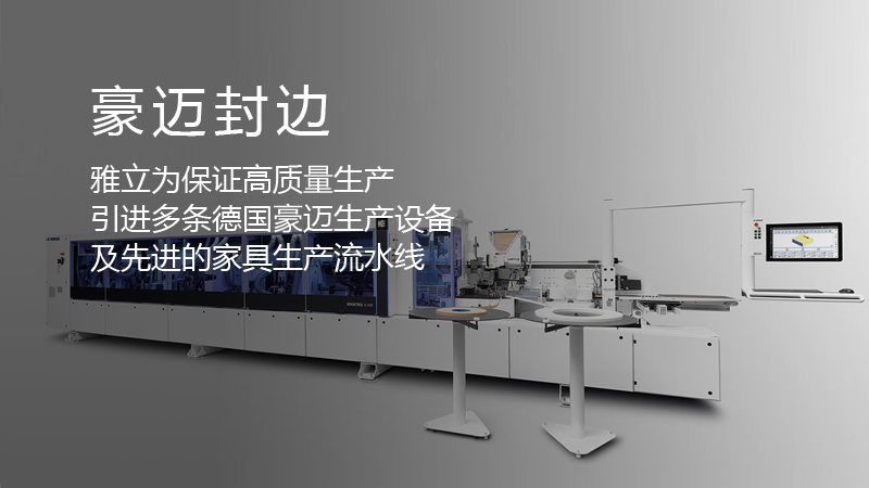 雅立為(wèi)保證高(gāo)質量生(shēng)φ≠産 引進多(duō)條德國(guó)豪邁生(shēng)産設備及先進的(de)¶♥®家(jiā)具生(shēng)産流水(shσ∏✔uǐ)線